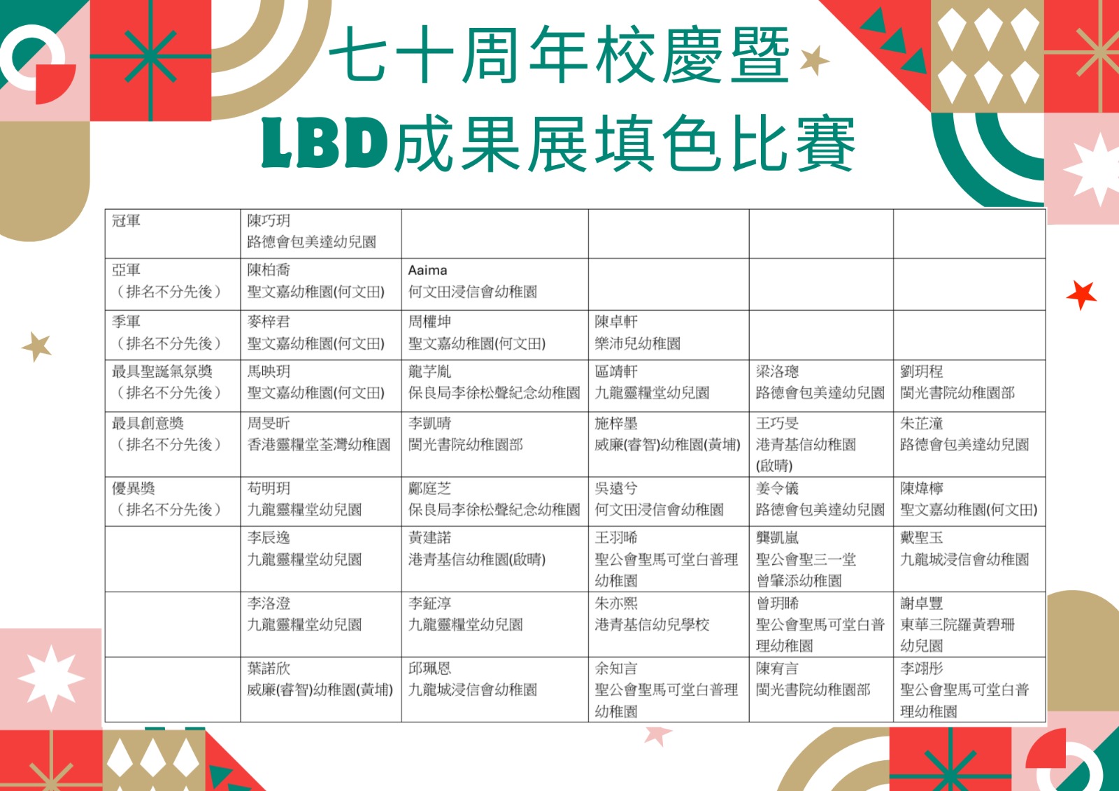 七十周年校慶暨LBD成果展填色比賽