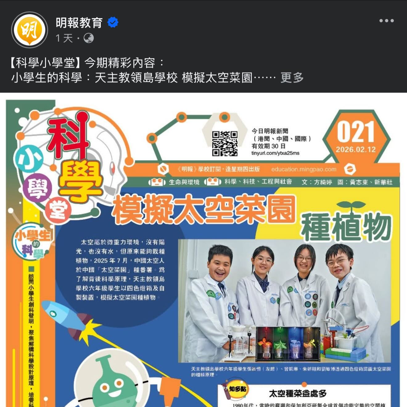 小學生的科學:模擬太空菜園 種植物 - 20260212 - 小學科學 - 明報教育網
